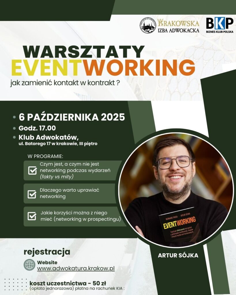 Krakowska Izba Adwokacka i  #Nowoczesna Adwokatura zapraszają na praktyczne warsztaty dedykowane adwokatom oraz aplikantom adwokackim, którzy chcą świadomie rozwijać swoje kompetencje w zakresie budowania relacji zawodowych.