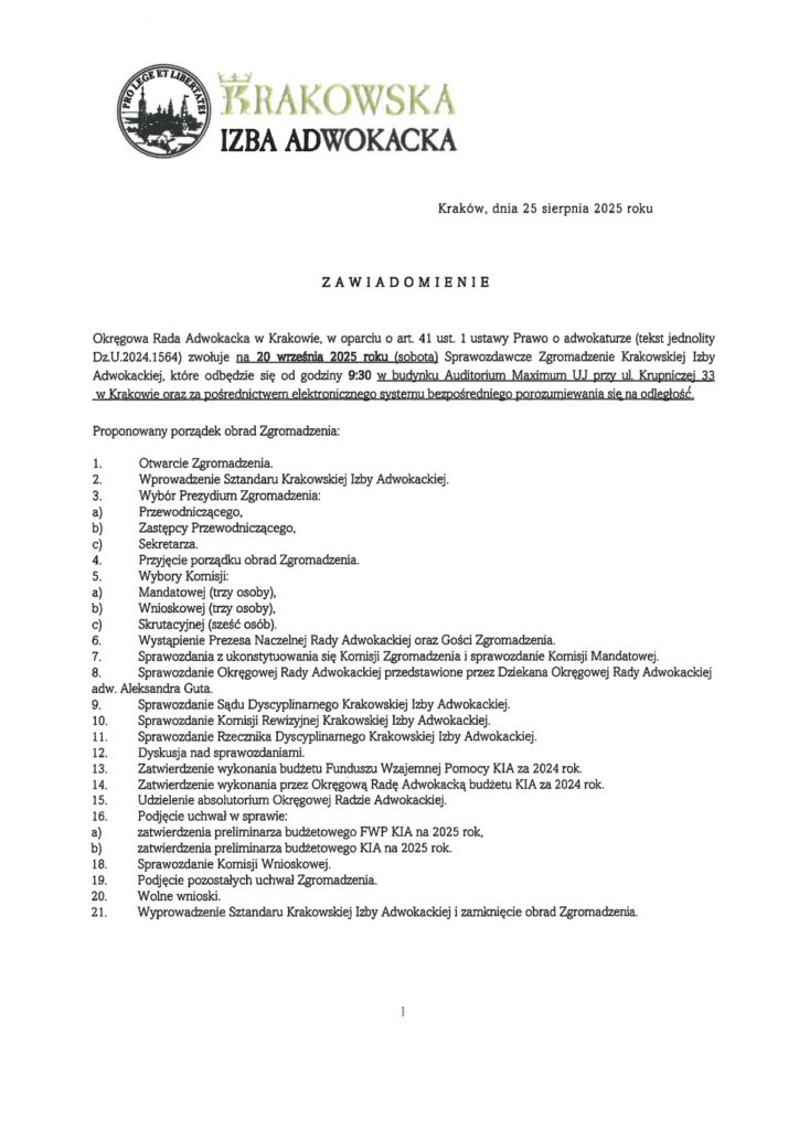 Zgromadzenie Krakowskiej Izby Adwokackiej 2025